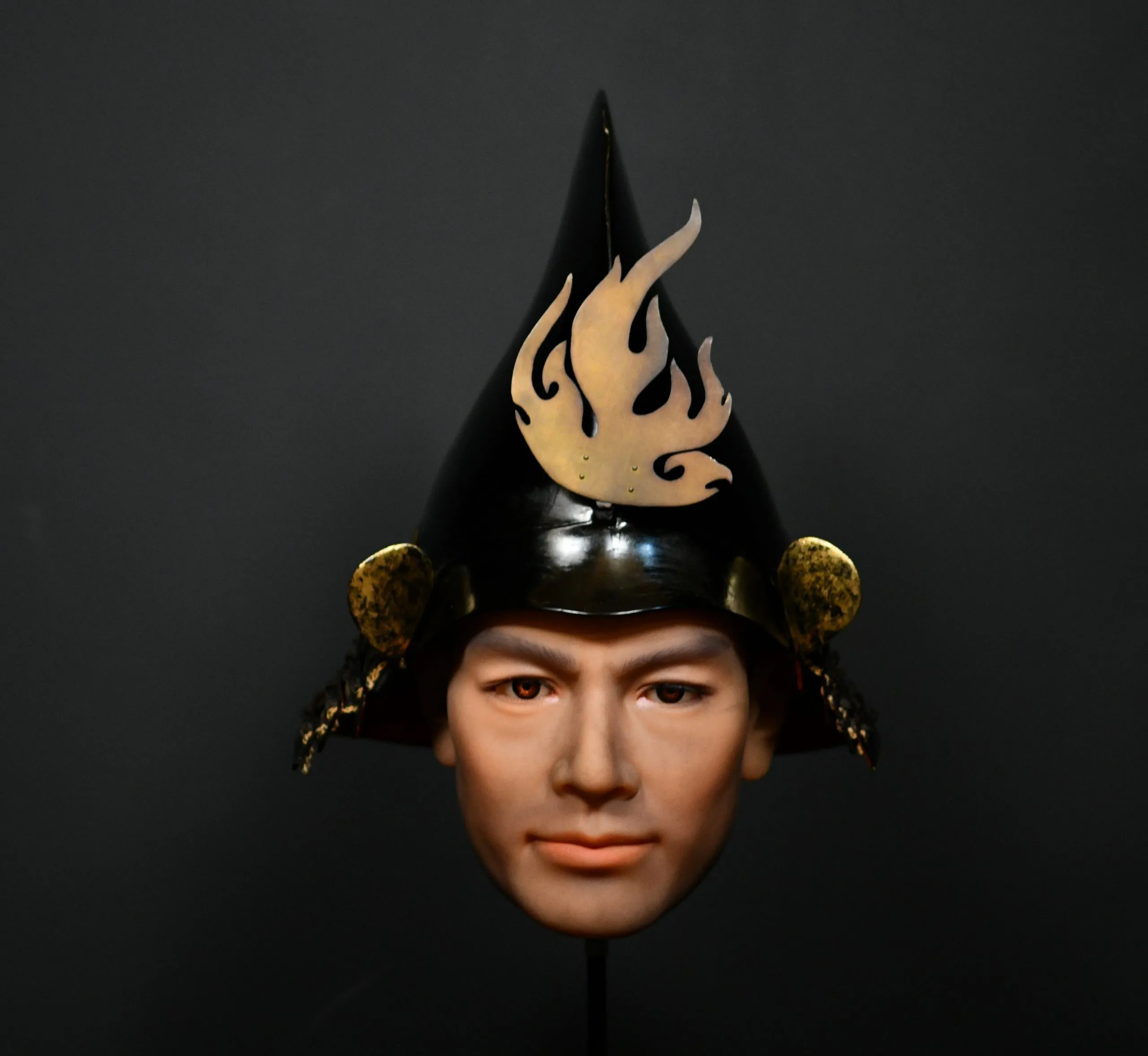 Ce kabuto de style eboshi est un remarquable exemple d’armure cérémonielle de samouraï de la période Edo. Sa forme haute et élancée rend hommage à la mode classique de la cour, réinterprétée pour une esthétique martiale et une représentation de haut rang. Le maedate en forme de flamme évoque une imagerie spirituelle, suggérant des liens avec des traditions bouddhistes ou ascétiques. Le raffinement de l’exécution, le contraste audacieux des finitions et l’excellent état de conservation indiquent que ce kabuto appartenait à un samouraï de haut rang ou était utilisé lors de processions officielles.