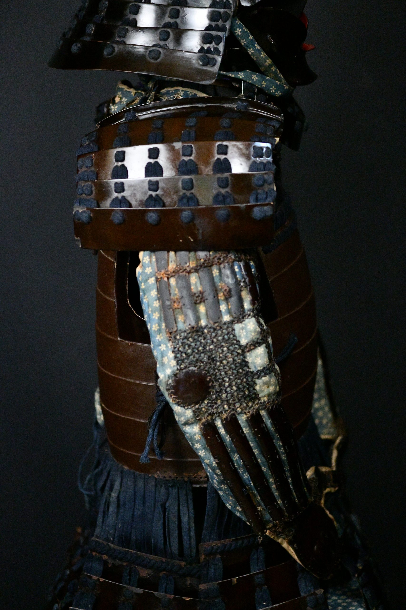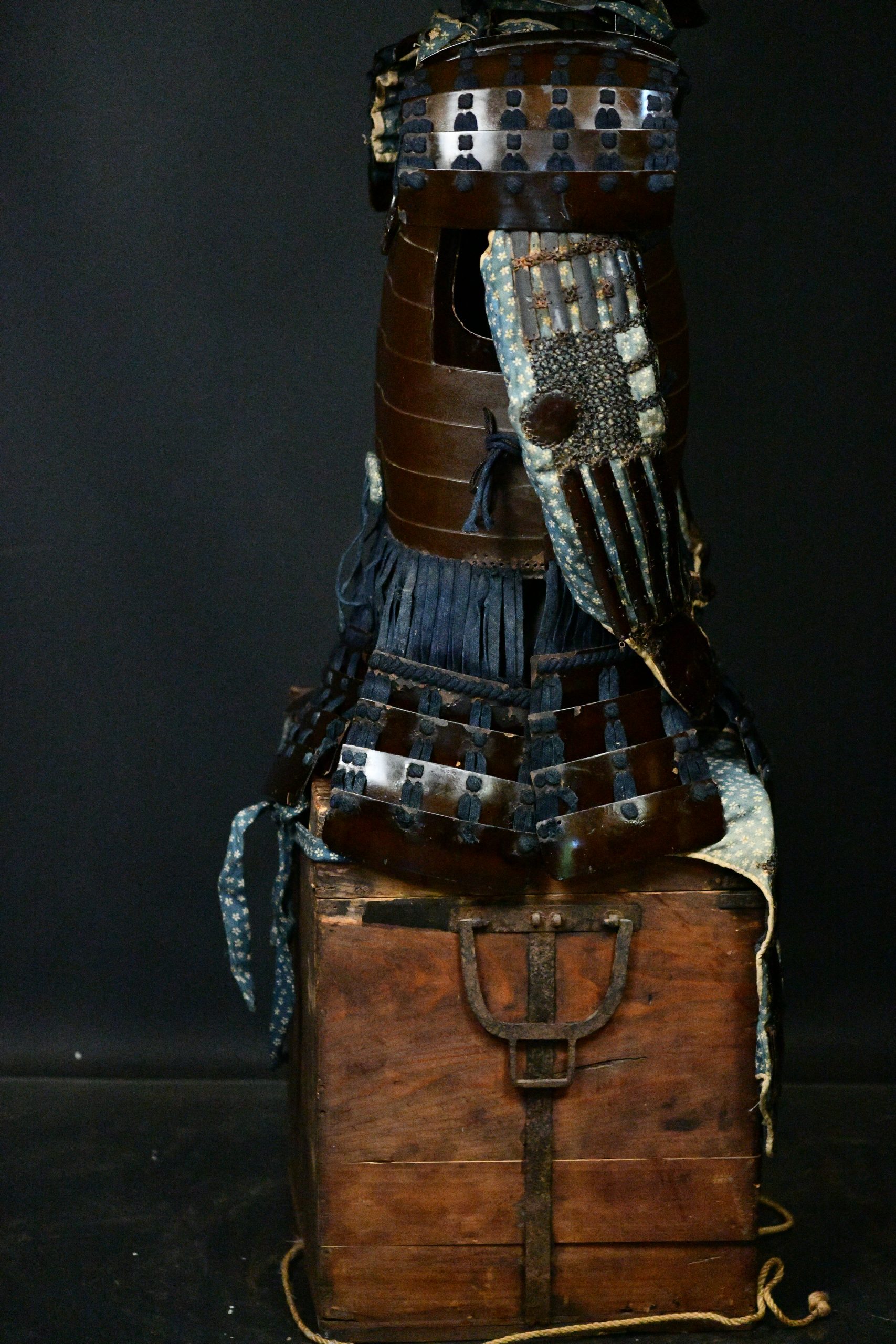 An authentic samurai armor that will be the central focus of any room where it is placed and that will delight any fan of Japanese art. A great stylish piece that will impress anywhere.As is normal in a suit of armor with so much history, which was undoubtedly used for combat and is not a mere reproduction of the 20th century, it has some superficial scratches, surface damage and chips that show that it had a long life of combat and retains an authentic and precious historical value worthy of a museum. This exclusive piece is making it an incredible opportunity for any collector of Japanese, war or simply historical art to get their hands on a piece that will attract attention wherever it is displayed, from offices, to private homes, offices or restaurants and will give a regal look to any place. The armour has gilded details that show the quality of the piece. The incredible workmanship accentuates such ornate pieces as the kabuto, the mempo and the Do. The stand to assemble it and the box are included. This armour is sure to delight any collector of Asian art and will be the focal point of any visitor’s home, shop or office. There is a very ancient object and there are damaged by time and tears. Due to the delicacy of continuous assembly and disassembly, returns are not allowed on old armor.