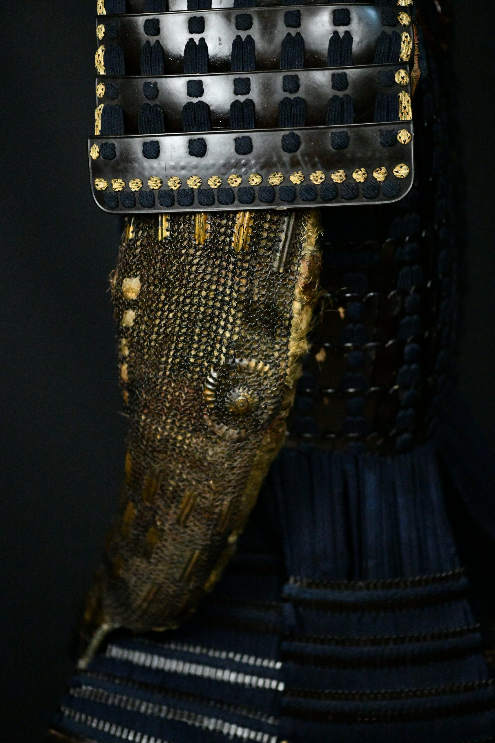 Armored Sleeves (Kote): Chainmail (kusari) over cloth with gold-plated metal inserts, articulated fingers.