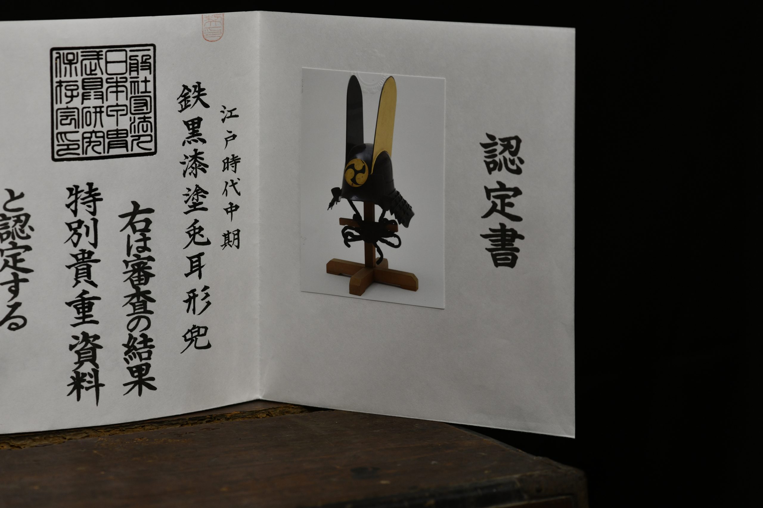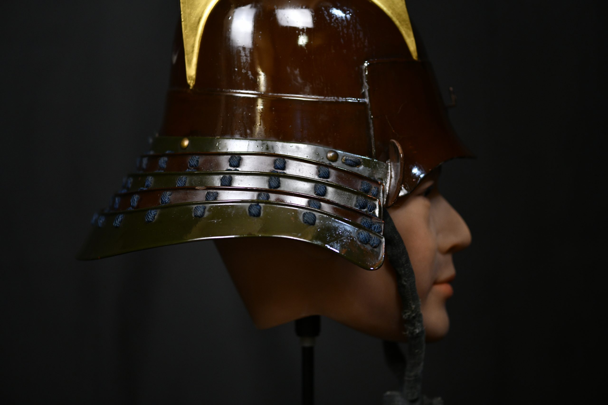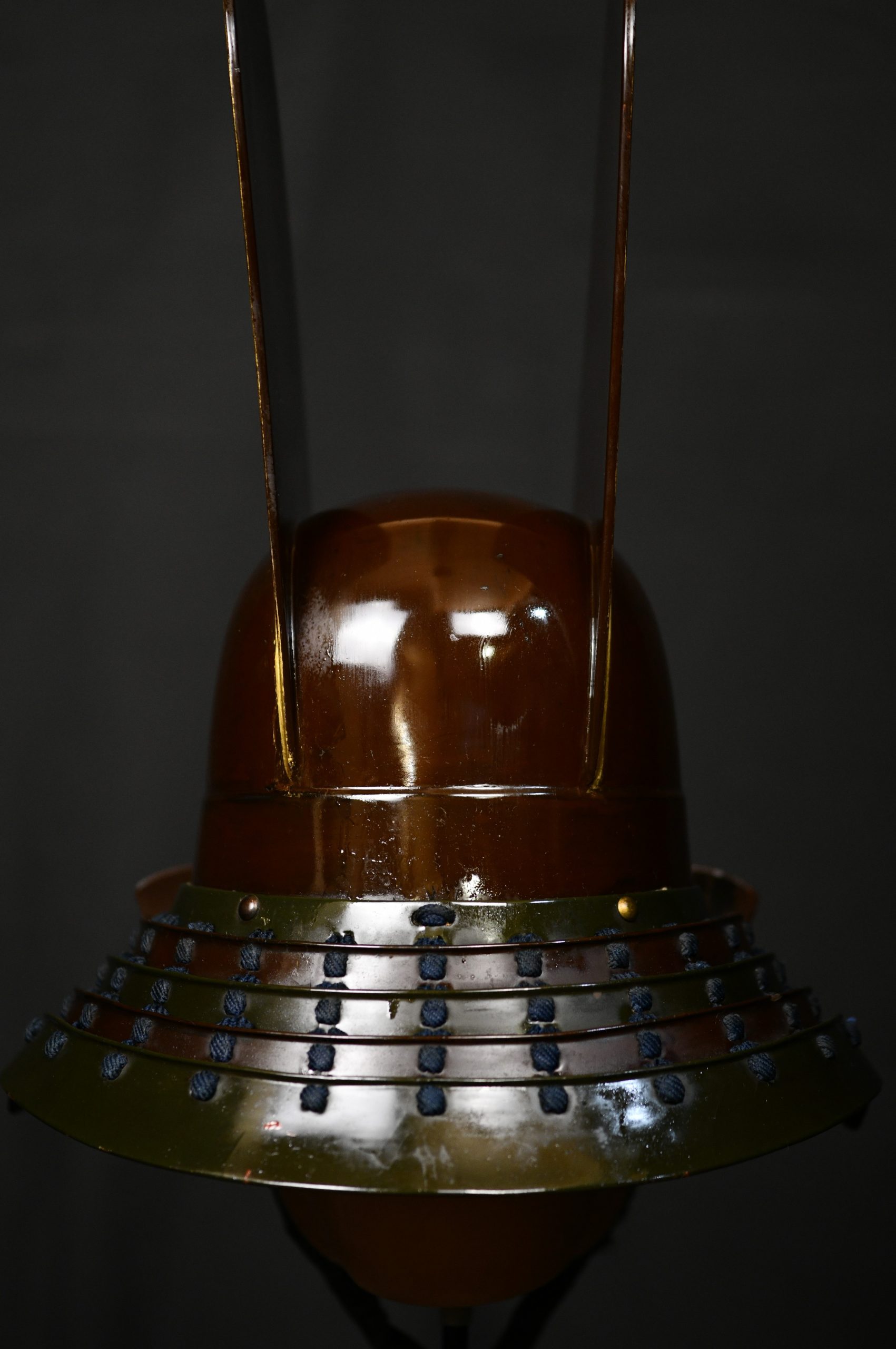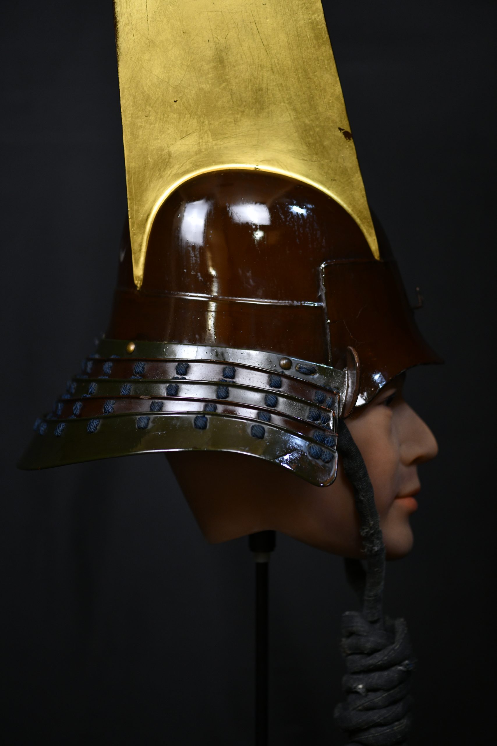 Magnificent and very old museum piece in a very good state of preservation given its age that also retains its original transport box and a Certificate NBTHK Tokobetsu kicho NBTHK high rank. This helmet is a unique piece as it has it all. Belonging to the early to mid Edo period, this Kawari style kabuto with Kabuto zunari base is a very rare piece and for the best collectors to be proud of as it certainly has the quality to be displayed in the best museums in the world. The kawari style used to be the favorite of the highest samurai class and the Daimyos or feudal lords as they were exclusive personalized works and no two were exactly alike. It can be seen for example in the shikoro slats, interspersed in brown lacquer and another with a greenish tone, the latter very rare since I had never seen a lacquer with that tone and it was certainly very difficult to achieve. The costs were obviously much higher than the classic kabutos, this one was even transported in its own box with appropriate measures, made of wood and reinforced with iron and handles. The certificate also revalues and secures it over time, making it a great investment since there are less and less of these special items and most of them are already part of high level private collections or exhibited in museums.