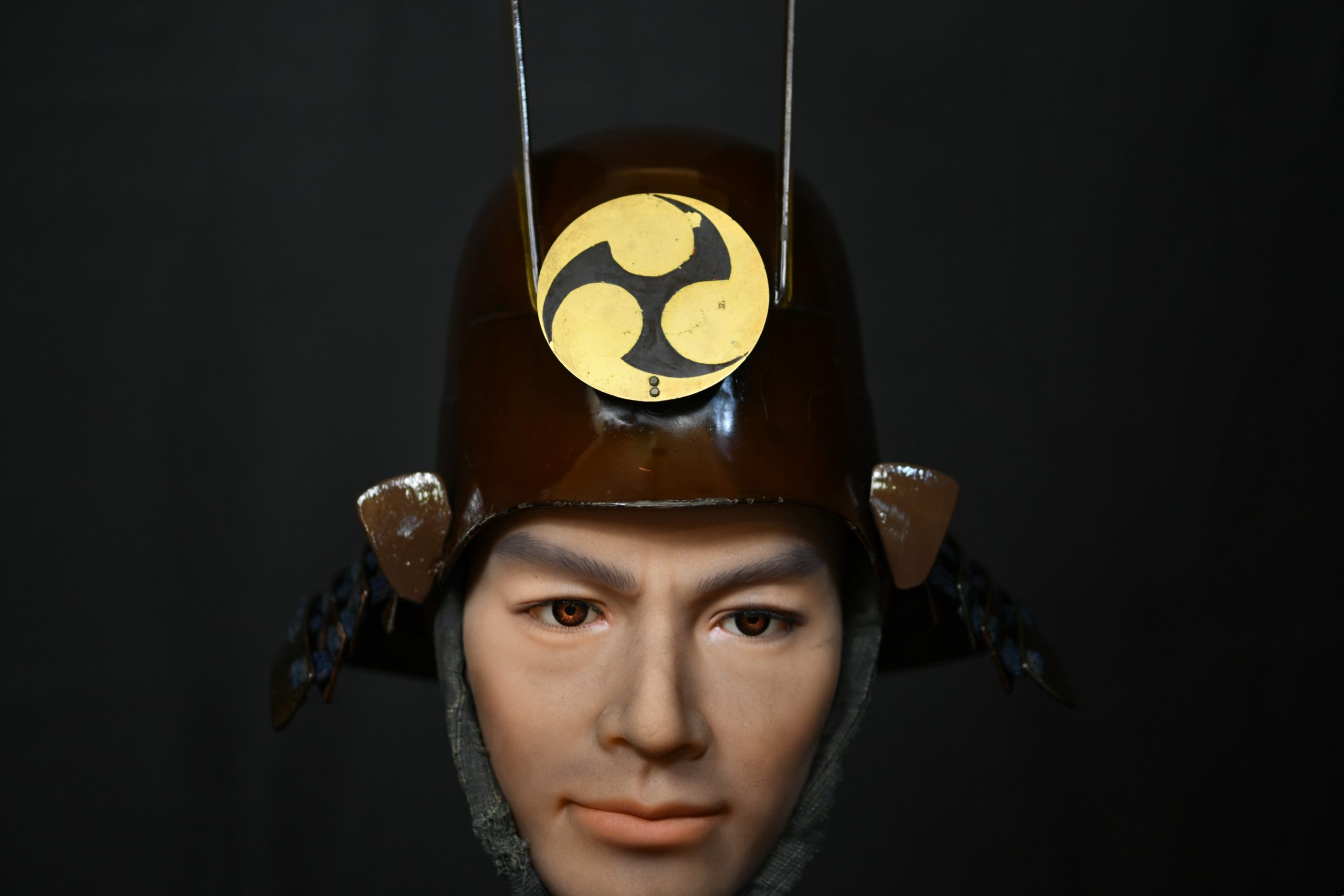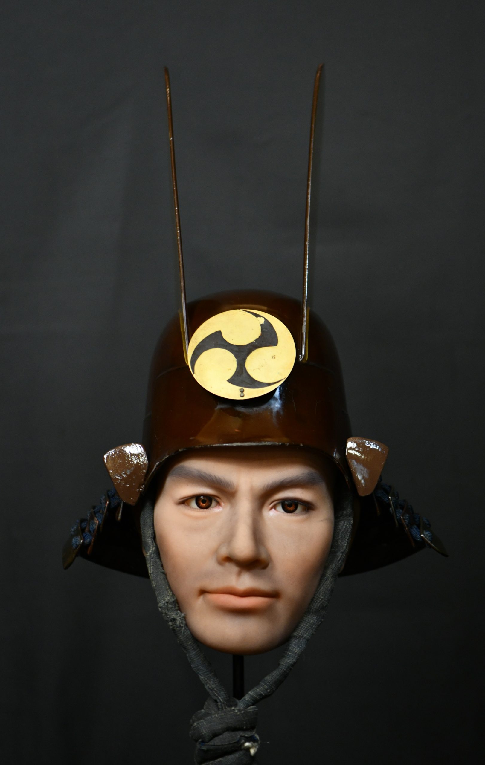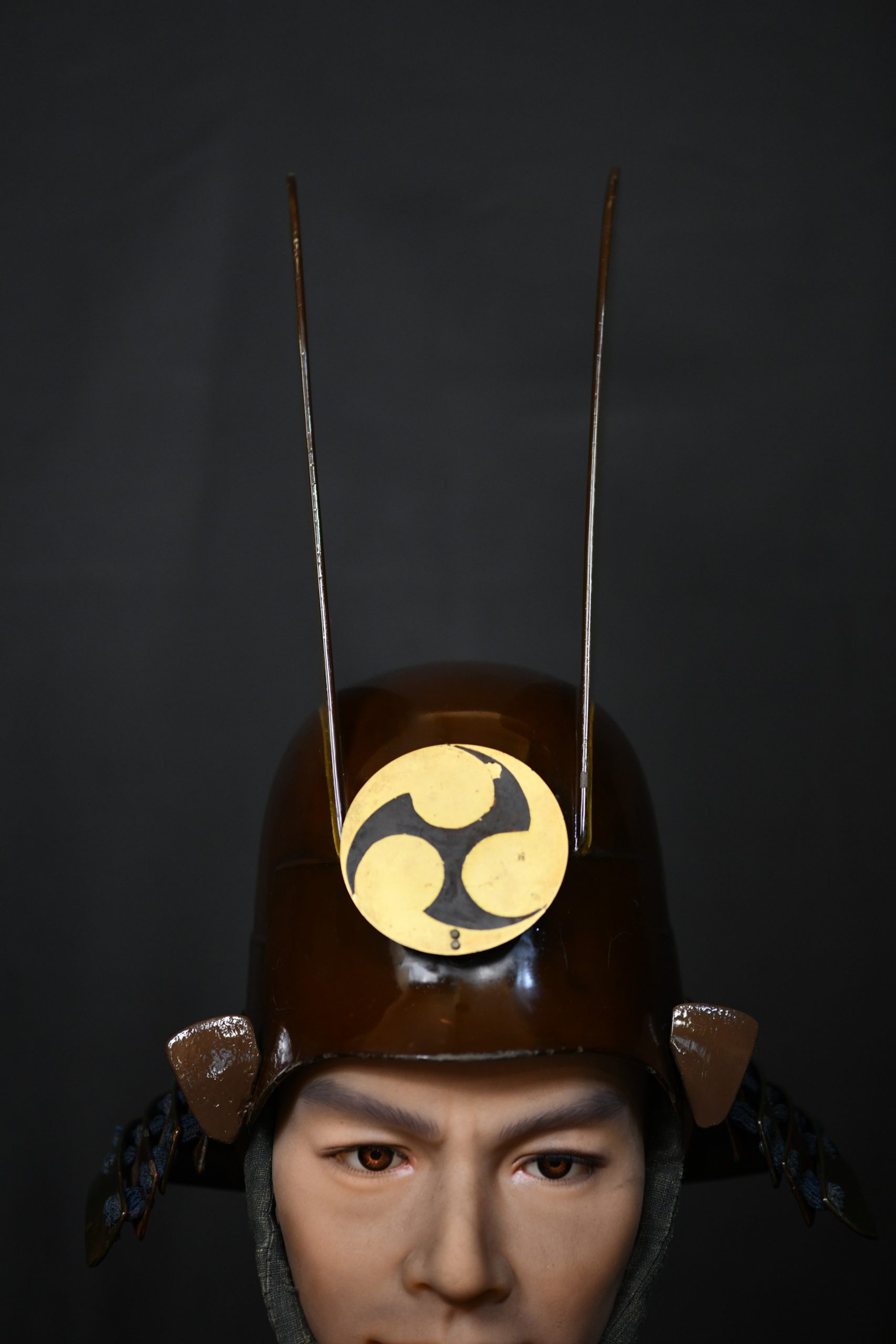 The maedate is decorated with the family clan symbol. This kabuto was acquired along with another Tanto at auction from a seller who had owned a small museum that closed a few decades ago. Several clans used this symbol, which was also found on the Tanto: The Kobayakawa, the Gamo or the Bessho.