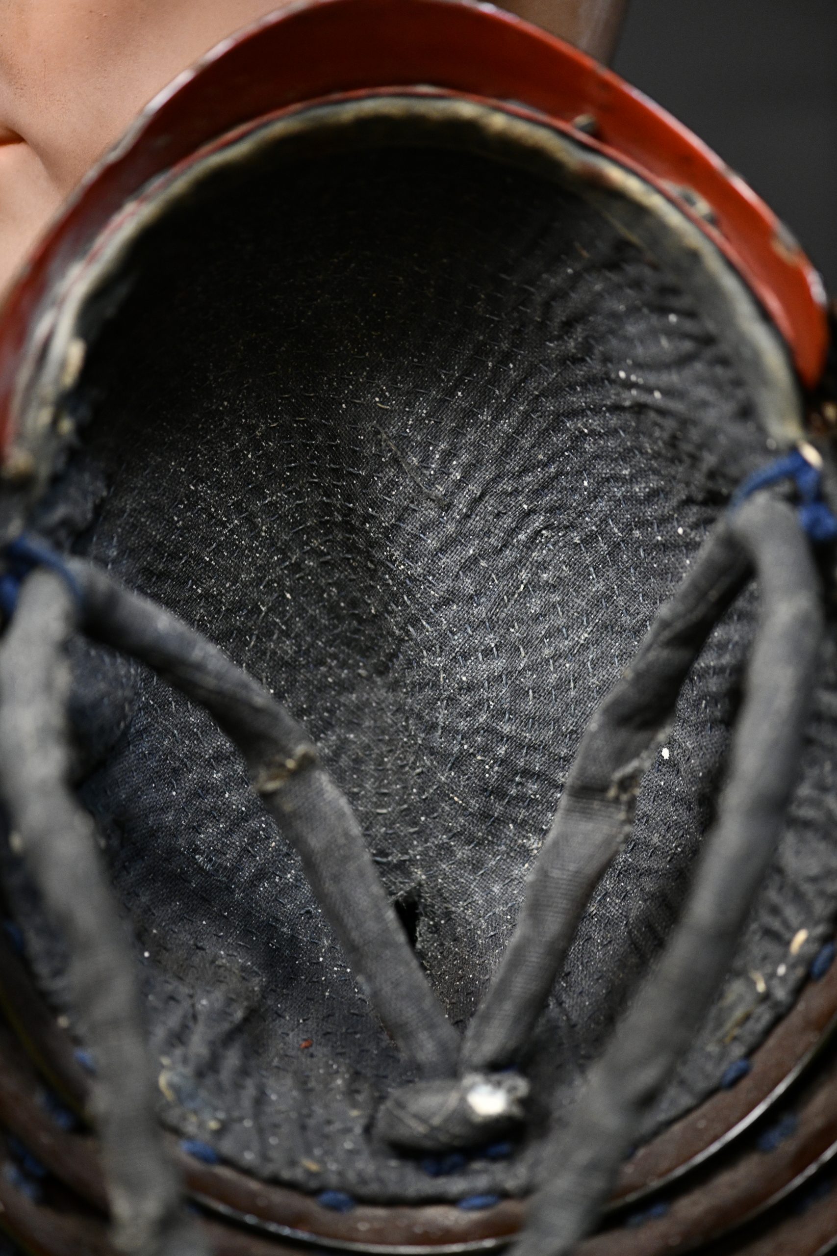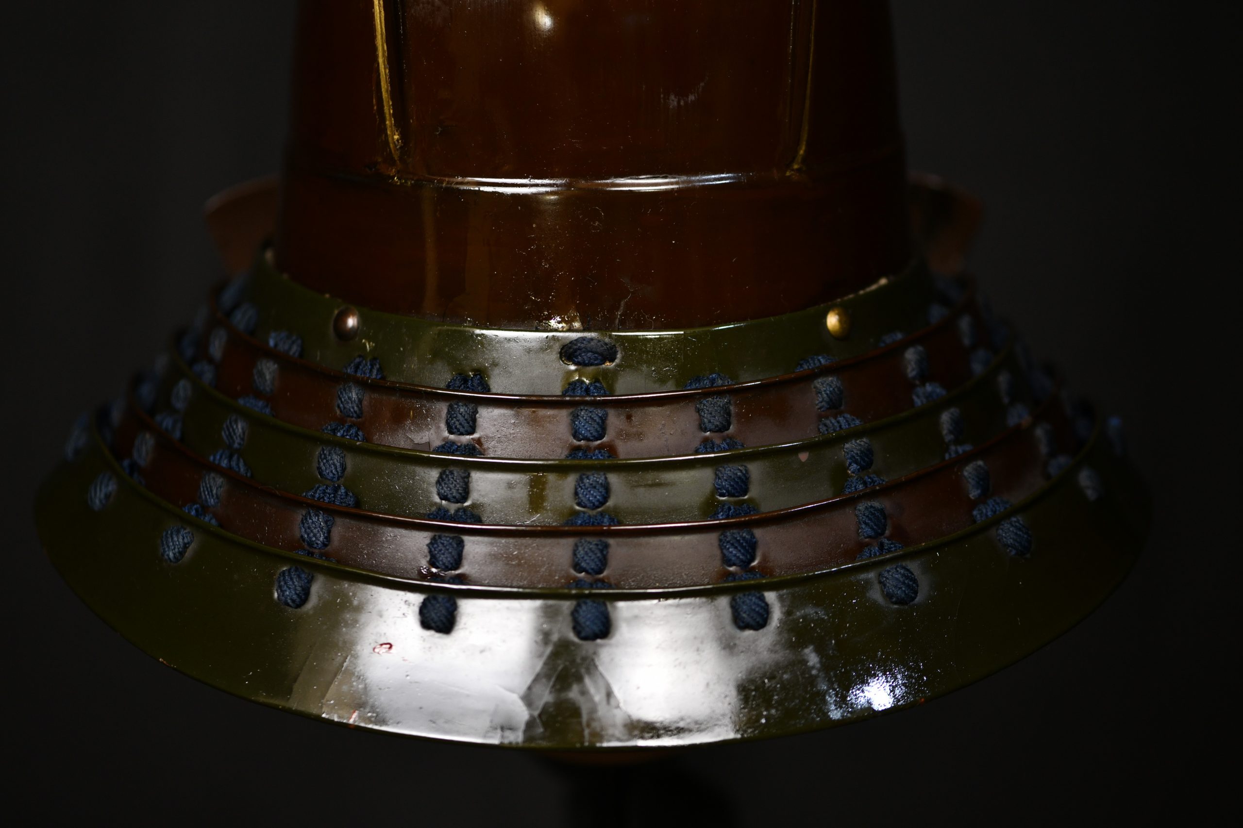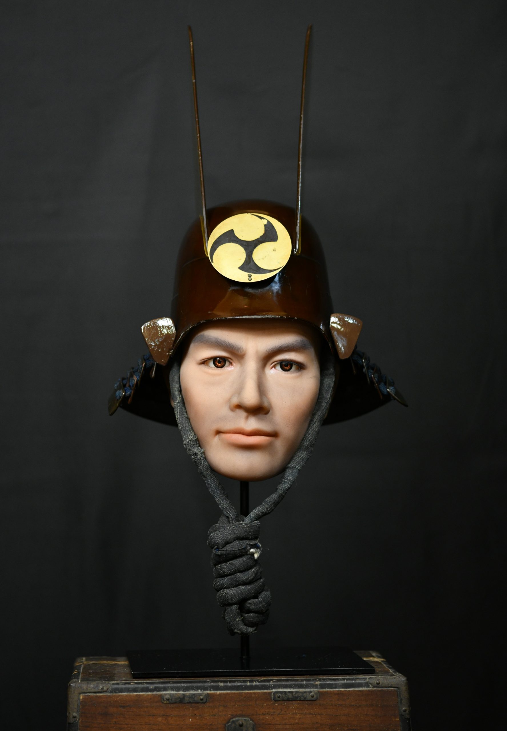 The maedate is decorated with the family clan symbol. This kabuto was acquired along with another Tanto at auction from a seller who had owned a small museum that closed a few decades ago. Several clans used this symbol, which was also found on the Tanto: The Kobayakawa, the Gamo or the Bessho.