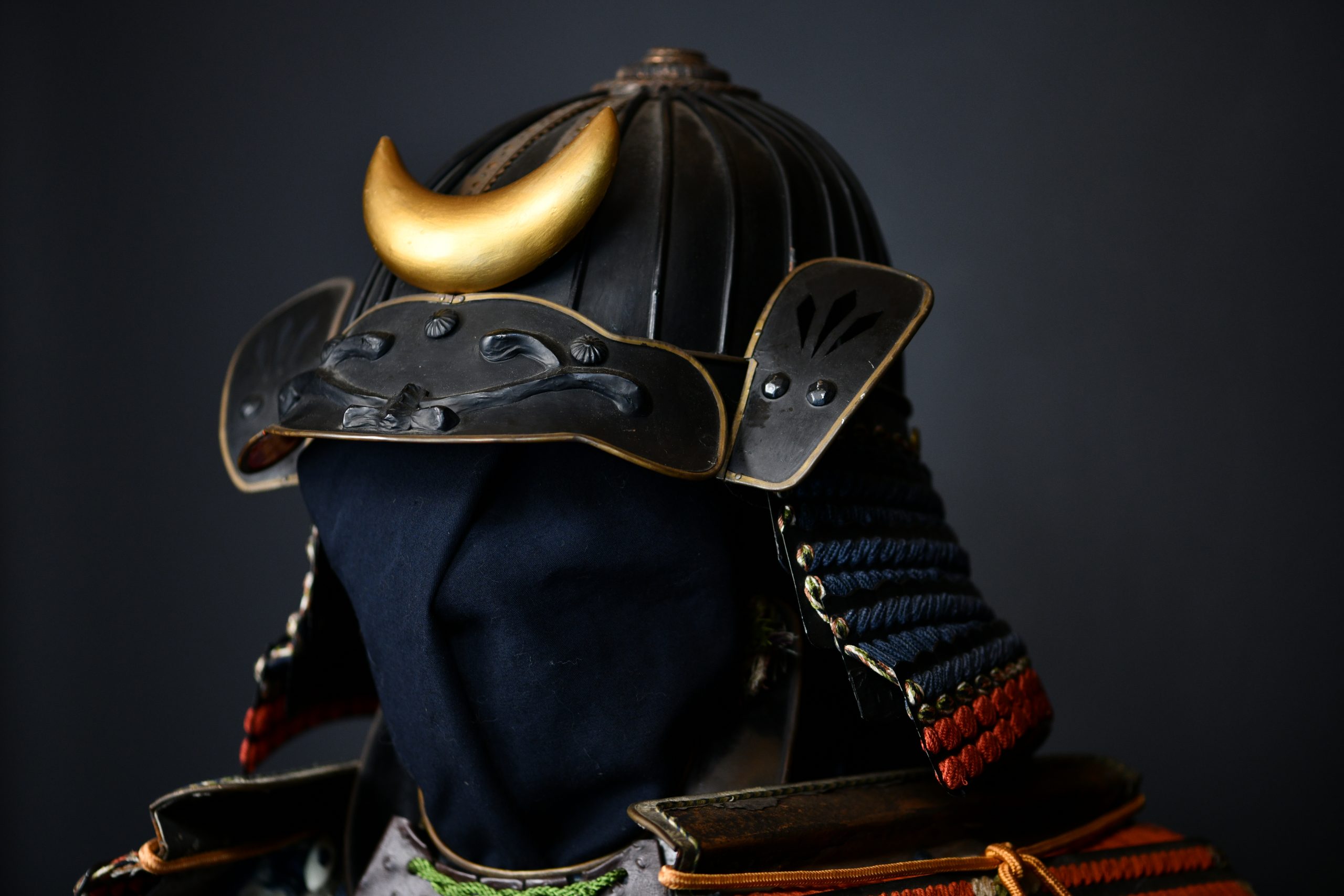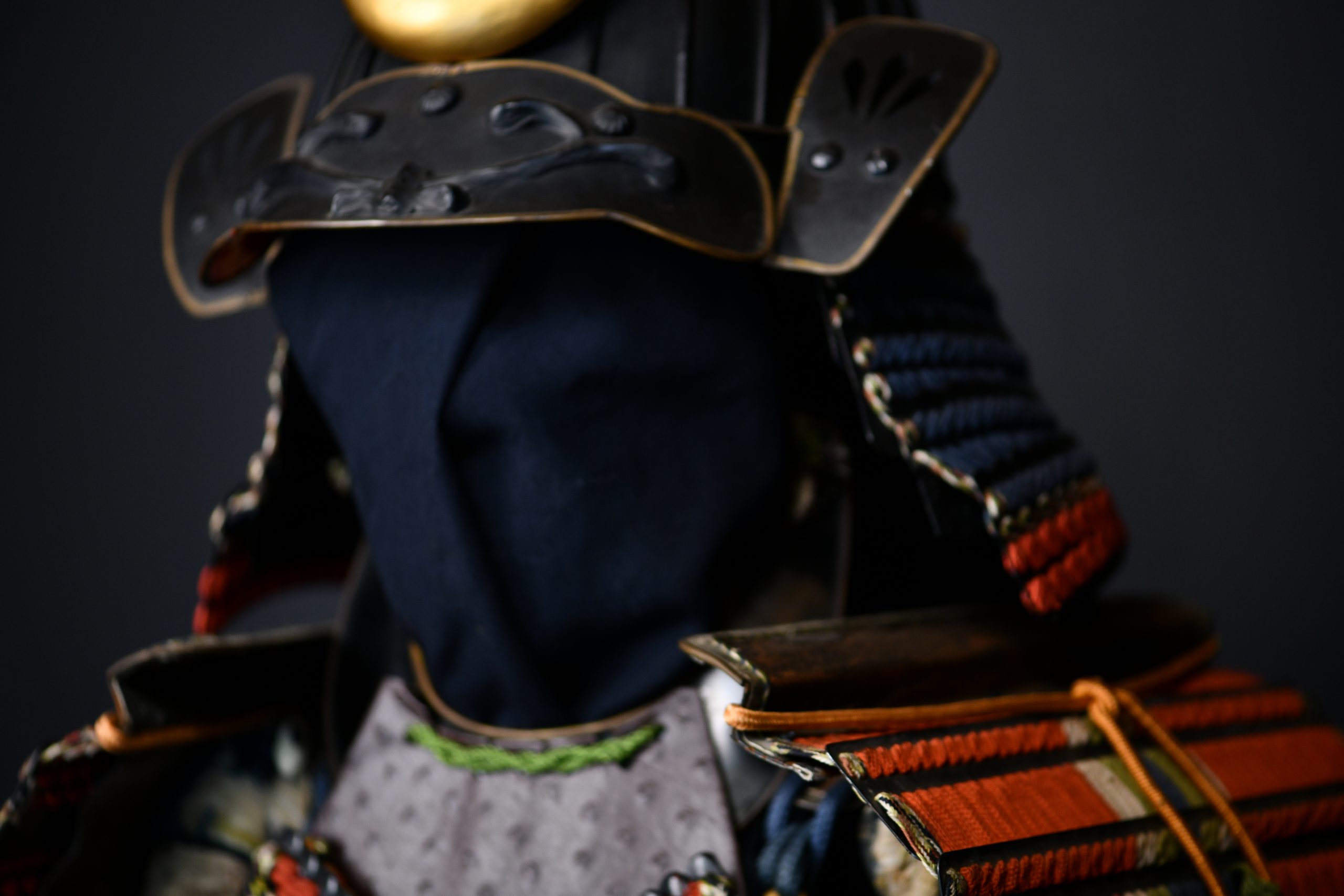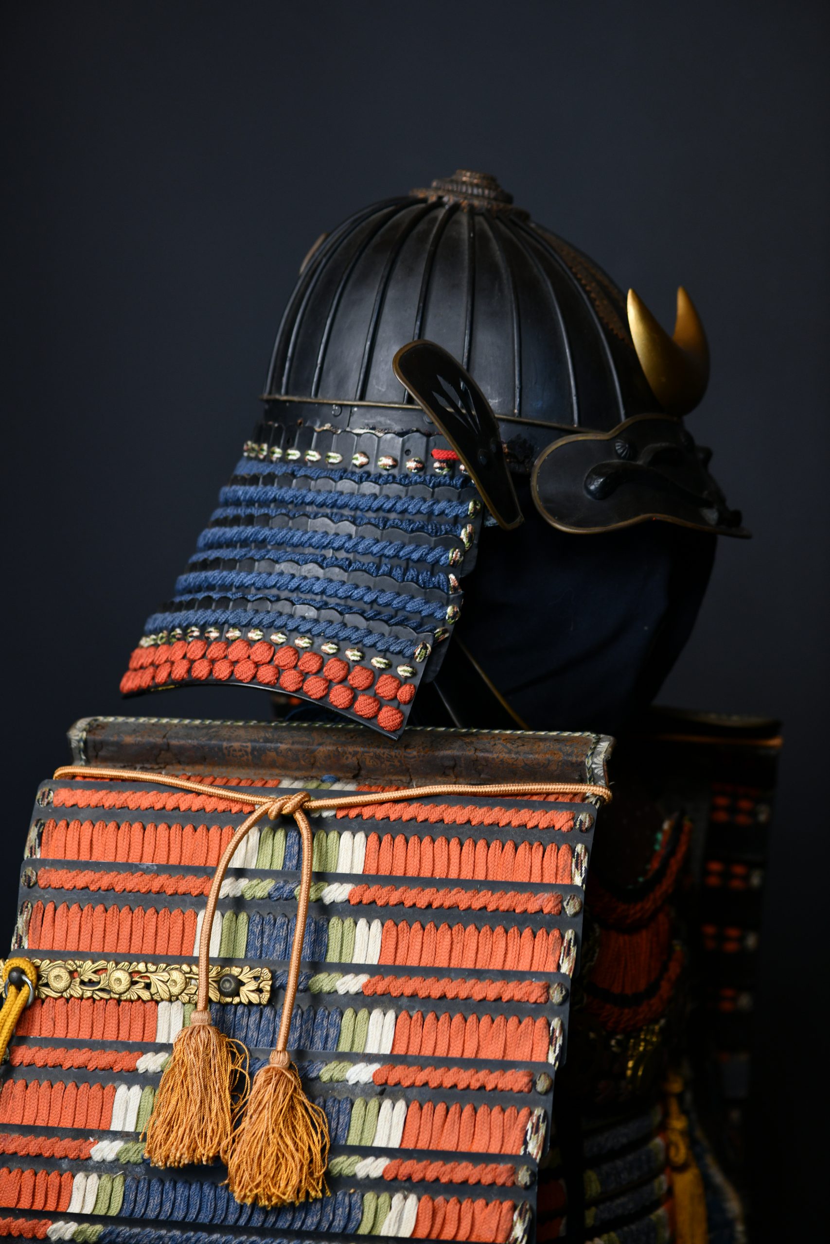 Shikoro: Three-tiered neck protection with deep blue cords and vermilion edging.