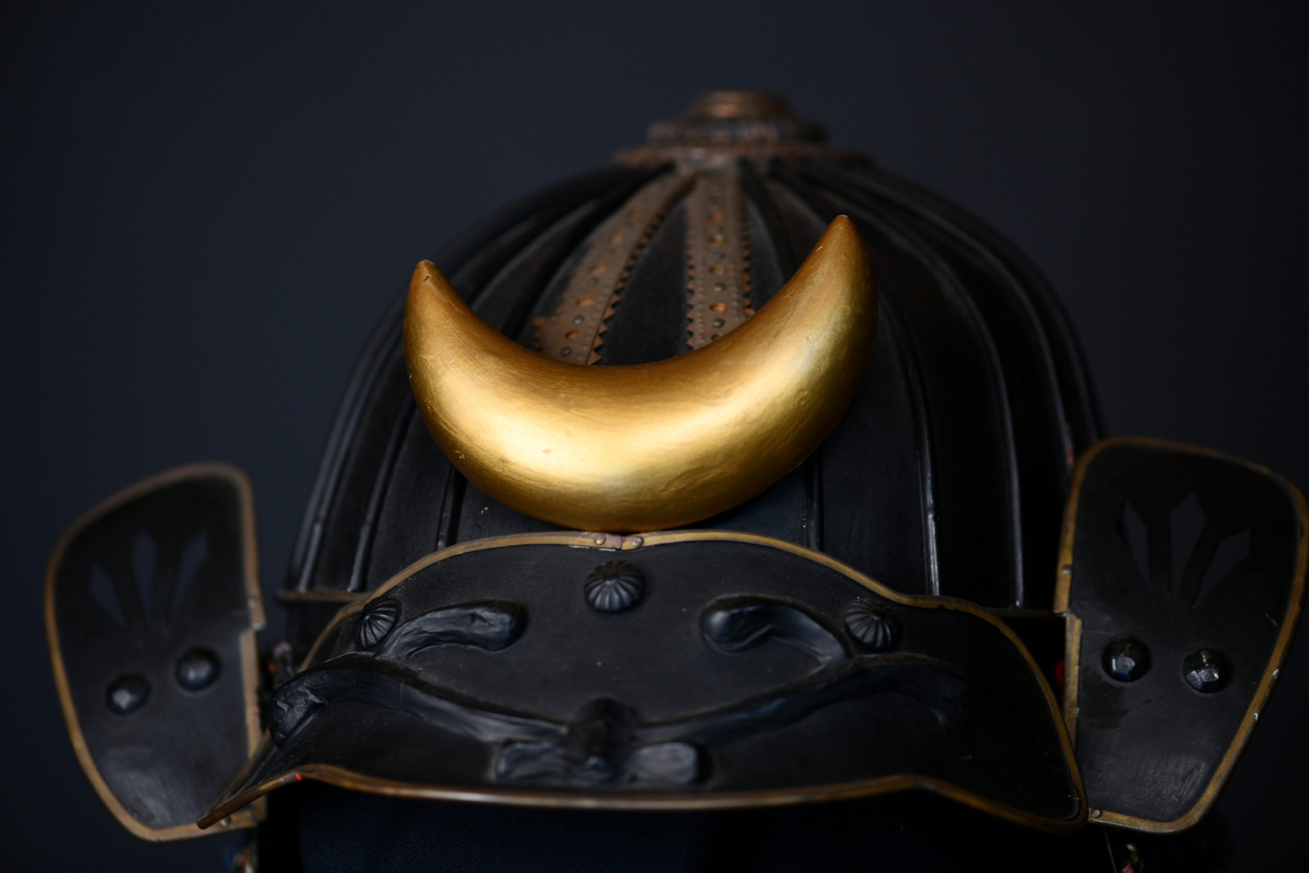 Maedate: A large golden crescent moon, emblematic of spirituality, mystery, and divine influence.